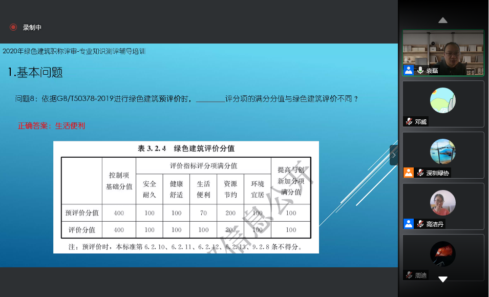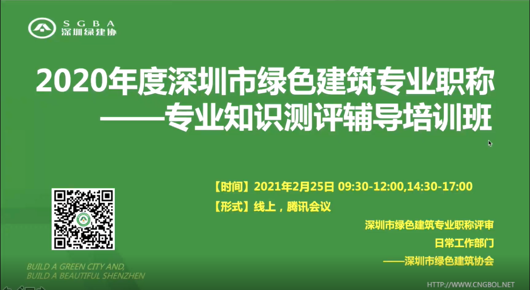 新年伊始,萬象更新。深圳市綠色建筑協(xié)會作為深圳市綠色建筑專業(yè)職稱評審日常工作部門,在行業(yè)專家的支持下,于2月25日舉辦了“2020年度綠色建筑職稱評審——專業(yè)知識測評輔導培訓班”。授課專家為本年度綠色建筑職稱申報人員梳理、講解綠色建筑專業(yè)知識、答疑解惑,本次培訓為高效推進職稱測評、提升申報人員專業(yè)技術(shù)水平,起到了積極促進作用。培訓采取線上會議方式進行,吸引了200余人參加。
