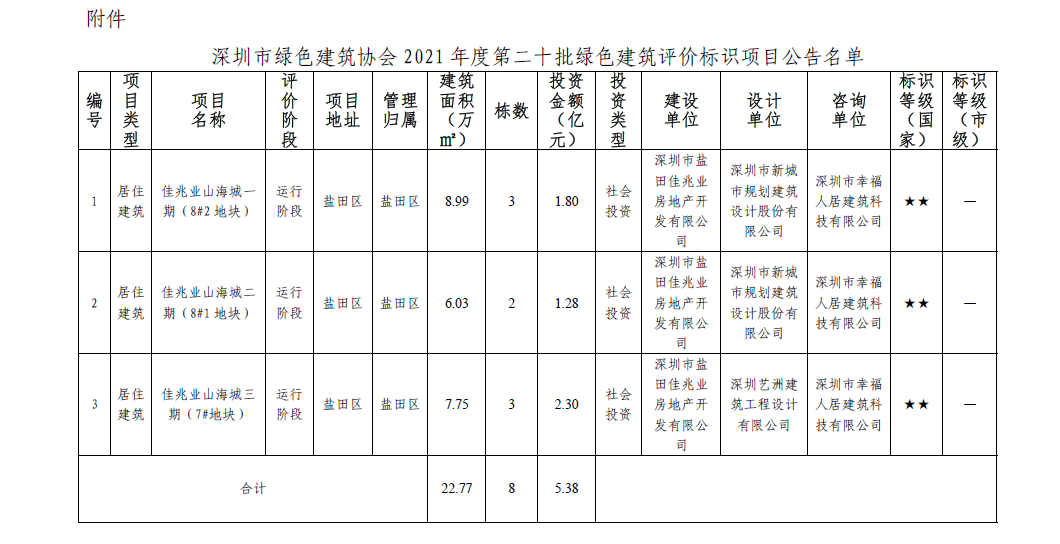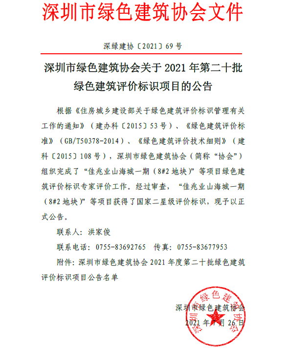深圳市綠色建筑協(xié)會關(guān)于2021 年第二十批綠色建筑評價標識項目的公告