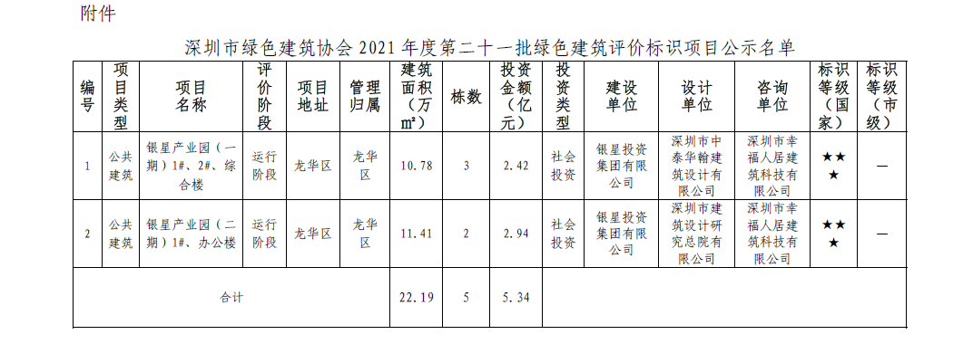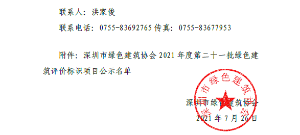 深圳市綠色建筑協(xié)會(huì)關(guān)于2021年第二十一批綠色建筑評(píng)價(jià)標(biāo)識(shí)項(xiàng)目的公示