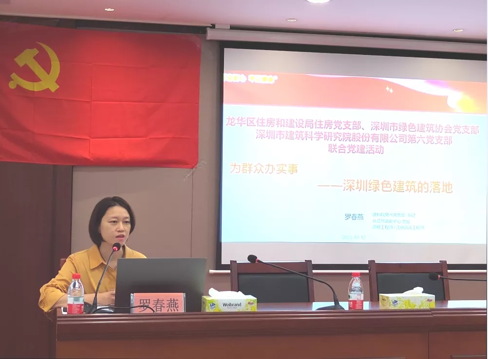 10月12日,深圳市綠色建筑協(xié)會(huì)黨支部聯(lián)合深圳市龍華區(qū)住建局住房黨支部、深圳市建筑科學(xué)研究院股份有限公司第六黨支部,在龍華區(qū)住建局會(huì)議室開展“深耕綠色 零碳未來——慶祝中華人民共和國成立72周年聯(lián)學(xué)聯(lián)建活動(dòng)”。龍華區(qū)住房和建設(shè)局領(lǐng)導(dǎo)、四級(jí)調(diào)研員柳長順,龍華區(qū)住房和建設(shè)局住房黨支部書記、建設(shè)科技與建筑廢棄物管理科科長黃振峰,深圳市綠色建筑協(xié)會(huì)黨支部書記、秘書長王向昱,深圳市建筑科學(xué)研究院股份有限公司第六黨支部書記、認(rèn)證與咨詢中心總監(jiān)羅春燕及三個(gè)黨支部的黨員同志參加活動(dòng)。
