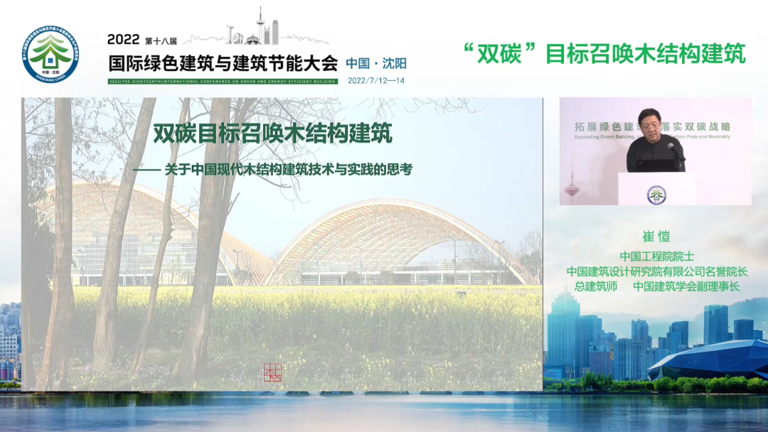 圍繞“木結(jié)構(gòu)建筑”和“雙碳戰(zhàn)略”兩個(gè)關(guān)鍵詞,崔愷院士在他的主旨報(bào)告中梳理了當(dāng)前我國(guó)發(fā)展木結(jié)構(gòu)的相關(guān)政策及標(biāo)準(zhǔn)規(guī)范,并指出木結(jié)構(gòu)建筑在全生命周期的能耗和環(huán)境影響遠(yuǎn)優(yōu)于鋼結(jié)構(gòu)和混凝土結(jié)構(gòu),具有固碳、生產(chǎn)運(yùn)輸能耗少、保溫性能佳、預(yù)制便捷、壽命長(zhǎng)和可回收利用等優(yōu)點(diǎn)。他表示,隨著我國(guó)雙碳戰(zhàn)略目標(biāo)的出臺(tái),使得綠色環(huán)保的現(xiàn)代木結(jié)構(gòu)建筑將會(huì)獲得更積極的重視和推廣,同時(shí)伴隨著生物源材料的廣泛使用、生物氣候設(shè)計(jì)和可再生能源的生產(chǎn)相結(jié)合,勢(shì)必將推動(dòng)可持續(xù)發(fā)展的生態(tài)轉(zhuǎn)型邁入新階段。