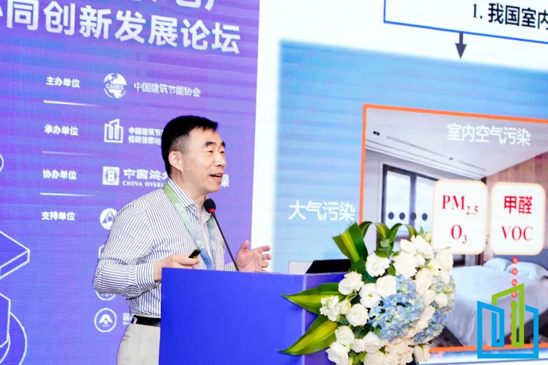 中國科學(xué)院院士吳碩賢為論壇發(fā)來視頻致辭,他表示,建筑領(lǐng)域的高質(zhì)量發(fā)展目標(biāo),具體體現(xiàn)在提升人居環(huán)境的質(zhì)量上,也就是提升聲環(huán)境、光環(huán)境以及室內(nèi)空氣品質(zhì),實現(xiàn)健康建筑。
