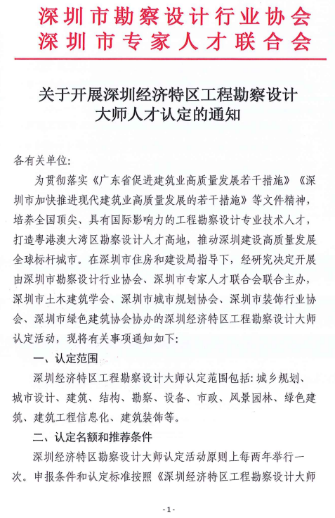 轉(zhuǎn)發(fā)《關(guān)于開(kāi)展深圳經(jīng)濟(jì)特區(qū)工程勘察設(shè)計(jì)大師人才認(rèn)定的通知》
