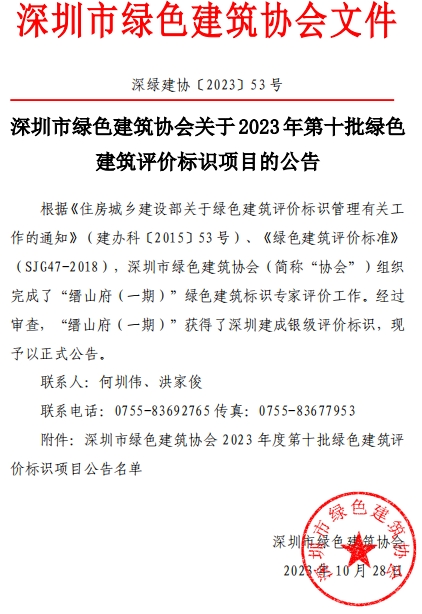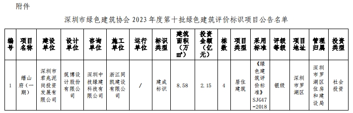 深圳市綠色建筑協(xié)會關(guān)于2023年第十批綠色建筑評價標(biāo)識項目的公告