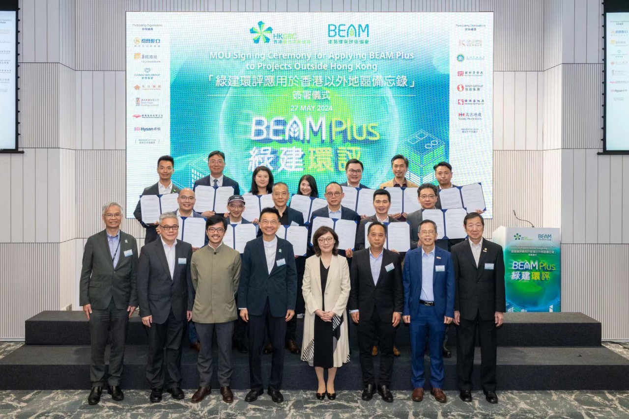 香港建筑環(huán)保評估協(xié)會、香港綠色建筑議會與13間來自香港以及大灣區(qū)的發(fā)展商、物業(yè)管理公司、院校及國企簽署備忘錄,包括招商蛇口工業(yè)區(qū)控股股份有限公司、華潤隆地有限公司、華懋集團(tuán)、英皇國際集團(tuán)有限公司、鷹君集團(tuán)有限公司、康業(yè)服務(wù)有限公司、希慎興業(yè)有限公司、啟勝管理服務(wù)有限公司、澳門科技大學(xué)、新世界發(fā)展有限公司、信和置業(yè)有限公司、新鴻基地產(chǎn)發(fā)展有限公司及太古地產(chǎn)有限公司。各單位承諾將積極探索把綠建環(huán)評體系內(nèi)的評級工具應(yīng)用到香港以外的地區(qū)。