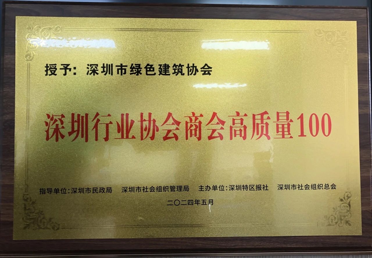 5月22日,由深圳市民政局、深圳市社會組織管理局、深圳市貿(mào)促委指導(dǎo),深圳市社會組織總會主辦的首屆“深圳行業(yè)協(xié)會商會高質(zhì)量100”發(fā)布會隆重舉行,來自行業(yè)協(xié)會商會的相關(guān)負(fù)責(zé)人、企業(yè)代表等200余人參與大會。深圳市綠色建筑協(xié)會黨支部書記、秘書長王向昱受邀出席并領(lǐng)取協(xié)會榮譽(yù)牌匾。本次授牌按綜合評分排序,我協(xié)會在本屆百家高質(zhì)量行業(yè)協(xié)會商會遴選中位列榜單前列(第十名),喜獲殊榮。