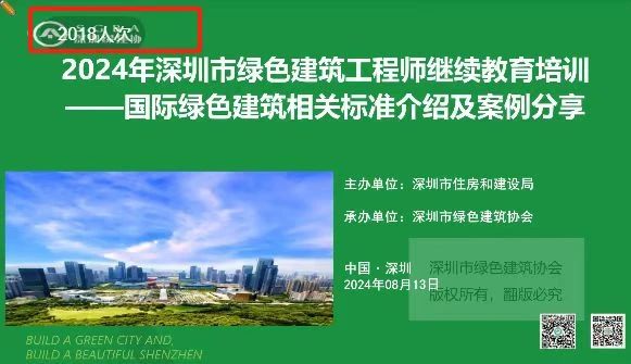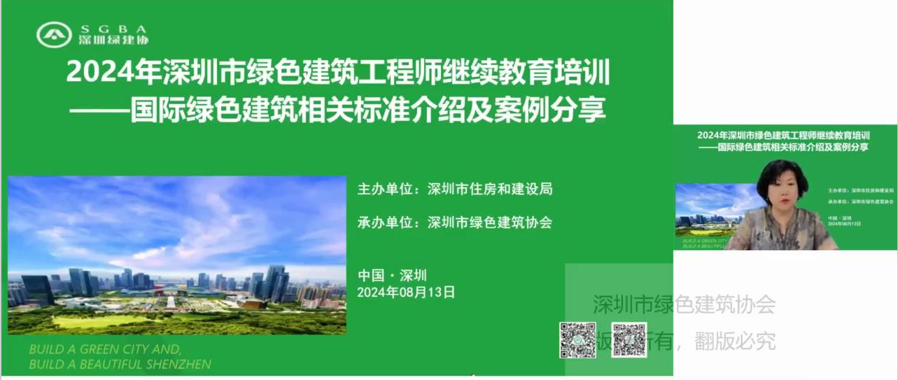 8月13日,由深圳市住房和建設(shè)局主辦、深圳市綠色建筑協(xié)會(huì)承辦的2024年深圳市綠色建筑工程師繼續(xù)教育培訓(xùn)——國際綠色建筑相關(guān)標(biāo)準(zhǔn)介紹及案例分享在線上舉行,2000余人次參與此次培訓(xùn)。