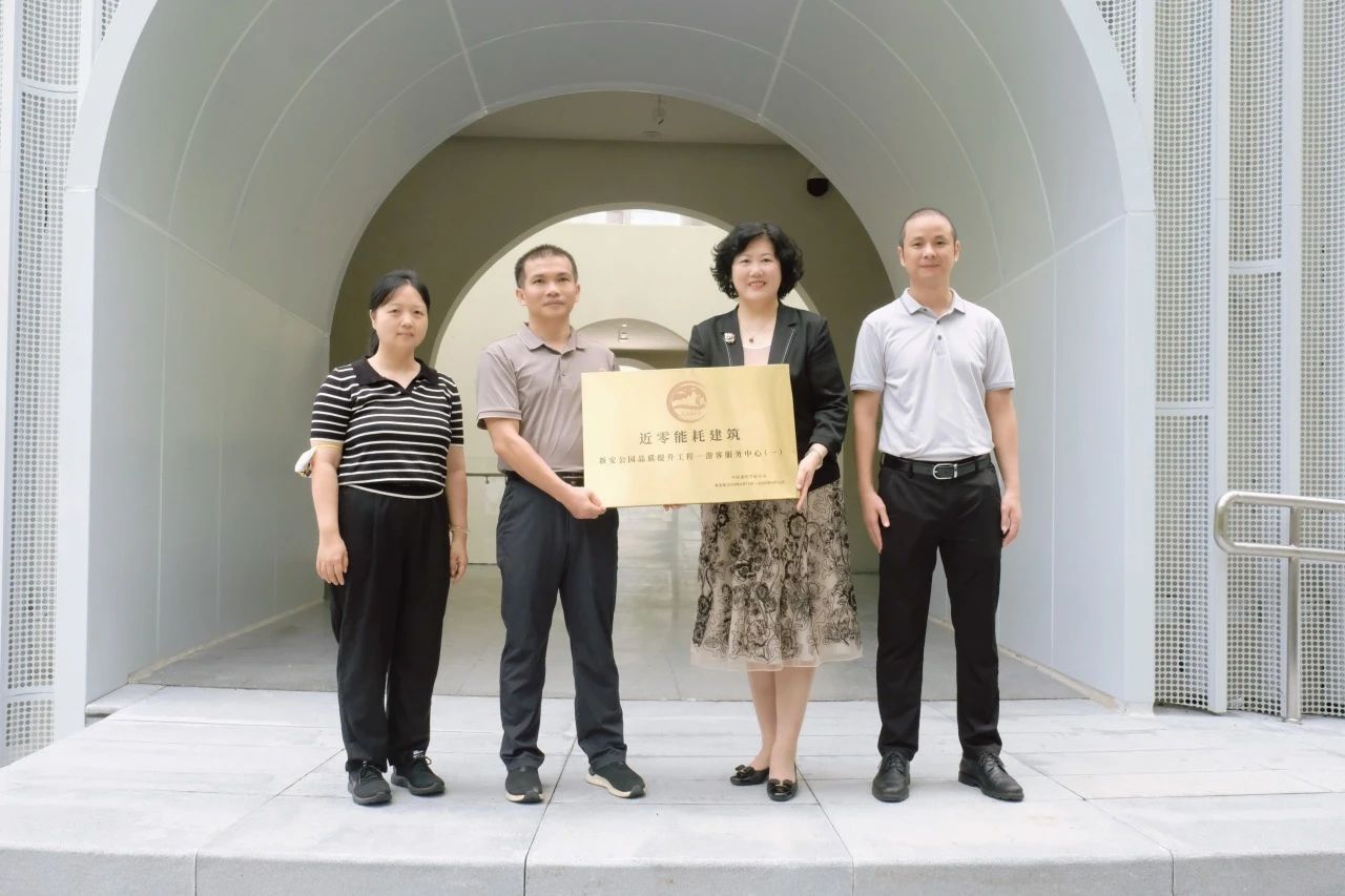 項(xiàng)目授牌儀式上,近零能耗建筑測評單位代表——深圳市綠色建筑協(xié)會黨支部書記、秘書長王向昱,為項(xiàng)目方代表——深圳市寶安區(qū)城市管理和綜合執(zhí)法局工程事務(wù)中心部長梁少武頒發(fā)“近零能耗建筑”標(biāo)識牌匾,寶安區(qū)住房和建設(shè)局黨組成員、副局長廖國輝和深圳市建設(shè)科技促進(jìn)中心高級工程師周曉璐與現(xiàn)場嘉賓共同見證這一具有特殊紀(jì)念意義的時刻。
