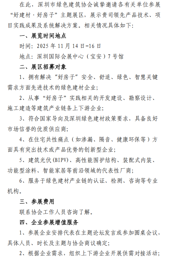 深圳市綠色建筑協(xié)會(huì)關(guān)于邀請(qǐng)參加“2025高交會(huì)—C3未來(lái)建筑大會(huì)‘好建材·好房子’主題展區(qū)”的函