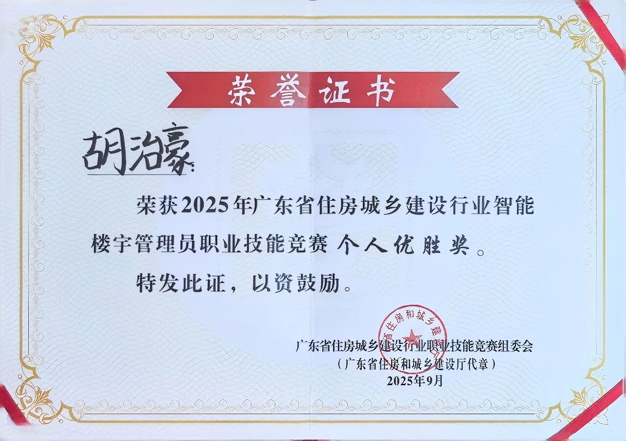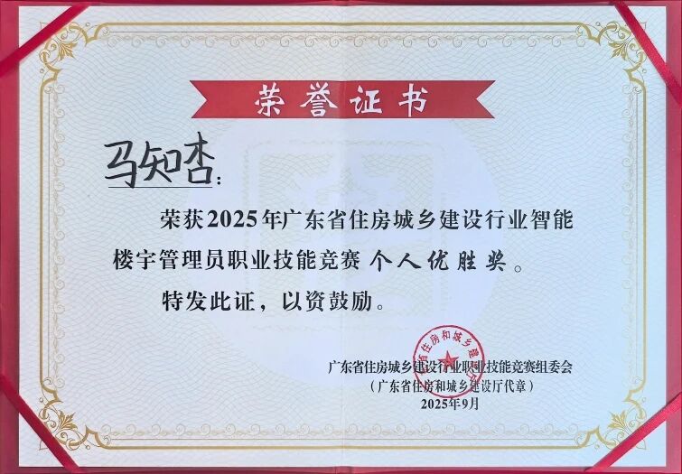 9月16日至18日,由廣東省住房城鄉(xiāng)建設(shè)廳、省人社廳聯(lián)合主辦的2025年廣東省住房城鄉(xiāng)建設(shè)行業(yè)智能樓宇管理員職業(yè)技能競賽在清遠(yuǎn)舉行。此次競賽規(guī)模盛大,共有31支代表隊(duì)、93名選手同場競技。樓宇科技胡治豪、馬知杏以及廣州公司賀炳林三人代表招商積余出征。