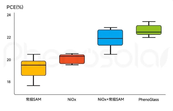 近日,現(xiàn)象光伏發(fā)布PhenoGlass®集成基底在300×300mm²標(biāo)準(zhǔn)尺寸下的最新測試成果,其在內(nèi)部研發(fā)及多家客戶場景中展現(xiàn)出優(yōu)異的光電轉(zhuǎn)換效率(PCE%)與一致性;本次測試覆蓋常規(guī)SAM、NiOx、NiOx+常規(guī)SAM、PhenoGlass®四種技術(shù)體系,多輪重復(fù)測試顯示PhenoGlass®批間偏差率極小,既體現(xiàn)了產(chǎn)品高一致性,也驗(yàn)證了預(yù)制化界面技術(shù)的規(guī)?;蓮?fù)制性;同時(shí)其平均效率達(dá)22.65%、最高效率突破23.45%,對(duì)比常規(guī)SAM體系平均絕對(duì)效率提升了約3%;對(duì)比NiOx+常規(guī)SAM體系平均絕對(duì)效率提升了約0.7%。