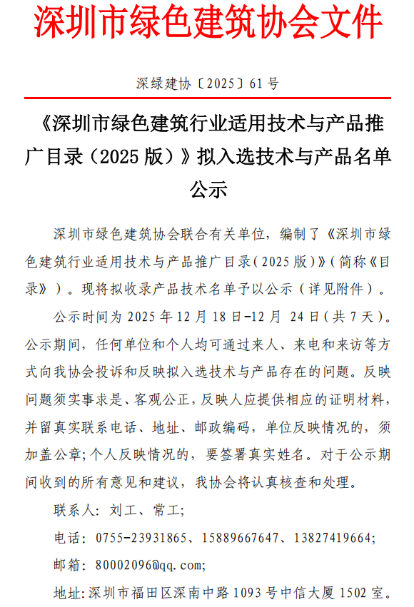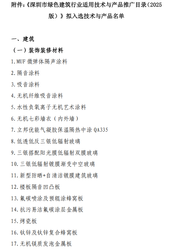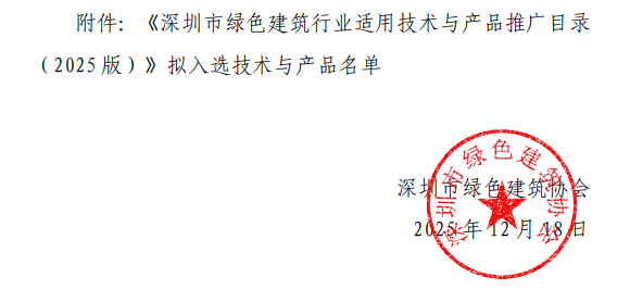 《深圳市綠色建筑行業(yè)適用技術(shù)與產(chǎn)品推廣目錄(2025版)》擬入選技術(shù)與產(chǎn)品名單公示