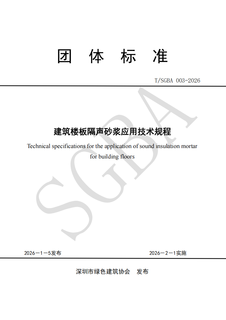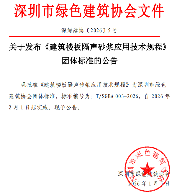 關(guān)于發(fā)布《建筑樓板隔聲砂漿應(yīng)用技術(shù)規(guī)程》團(tuán)體標(biāo)準(zhǔn)的公告