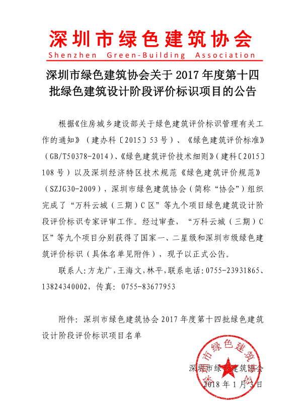 關(guān)于2017年度第十四批綠色建筑設(shè)計(jì)階段評(píng)價(jià)標(biāo)識(shí)項(xiàng)目的公告