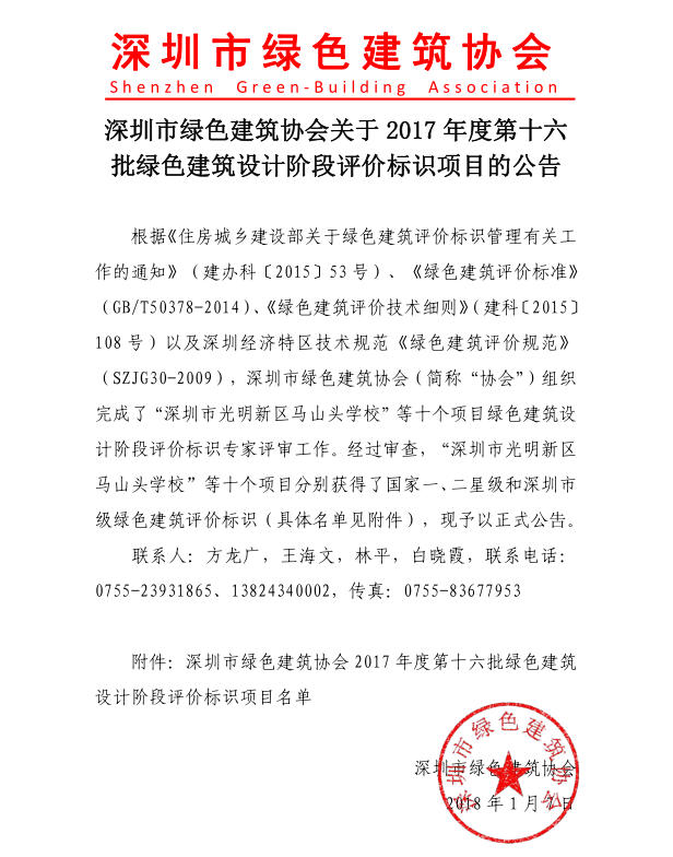 關(guān)于2017年度第十六批綠色建筑設(shè)計階段評價標(biāo)識項目的公告