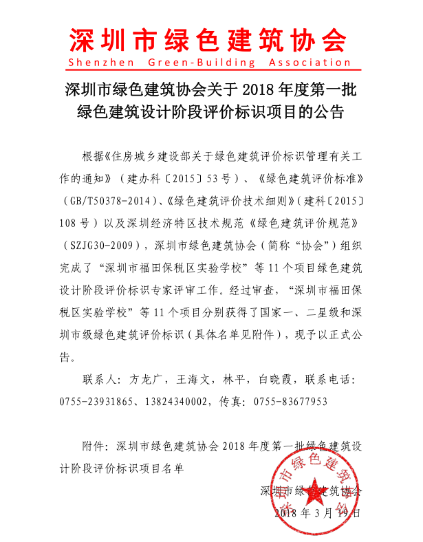關(guān)于2018年度第一批綠色建筑設(shè)計(jì)階段評(píng)價(jià)標(biāo)識(shí)項(xiàng)目的公告