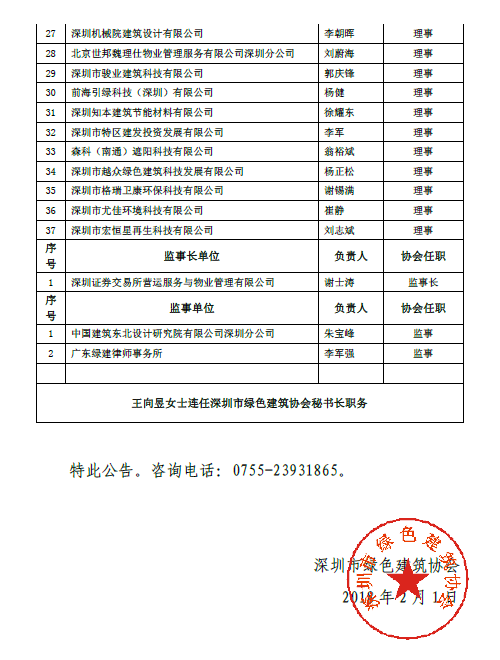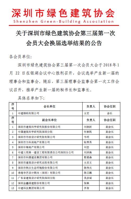 關(guān)于深圳市綠色建筑協(xié)會(huì)第三屆第一次會(huì)員大會(huì)換屆選舉結(jié)果的公告