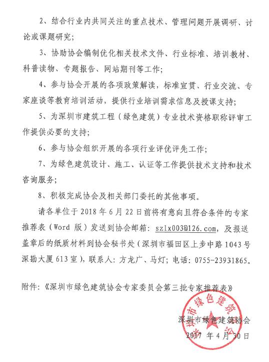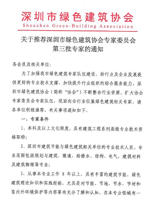關(guān)于推薦深圳市綠色建筑協(xié)會(huì)專家委員會(huì)第三批專家的通知