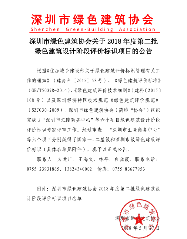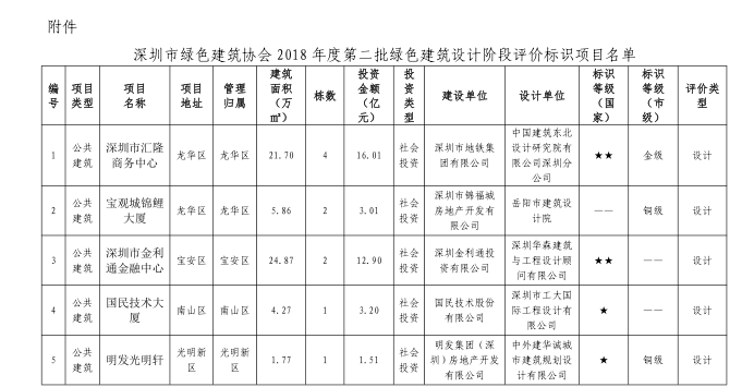 關(guān)于2018年度第二批綠色建筑設(shè)計階段評價標(biāo)識項目的公告
