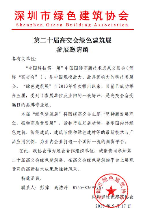 第二十屆高交會綠色建筑展參展邀請函