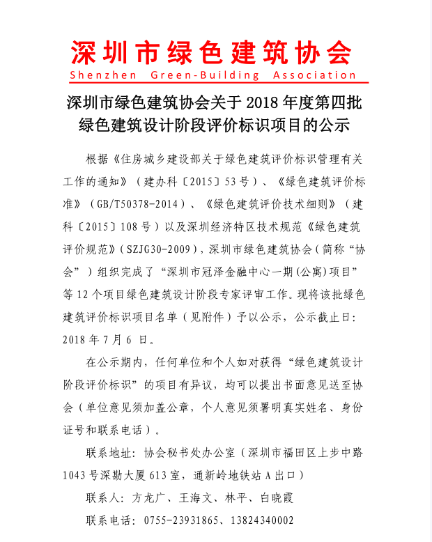 關(guān)于2018年度第四批綠色建筑設(shè)計階段評價標(biāo)識項目的公示
