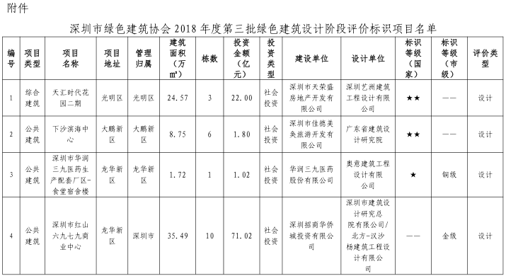 關(guān)于2018年度第三批綠色建筑設(shè)計(jì)階段評(píng)價(jià)標(biāo)識(shí)項(xiàng)目的公示