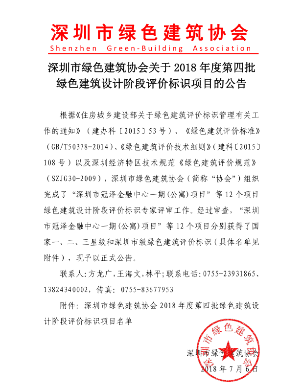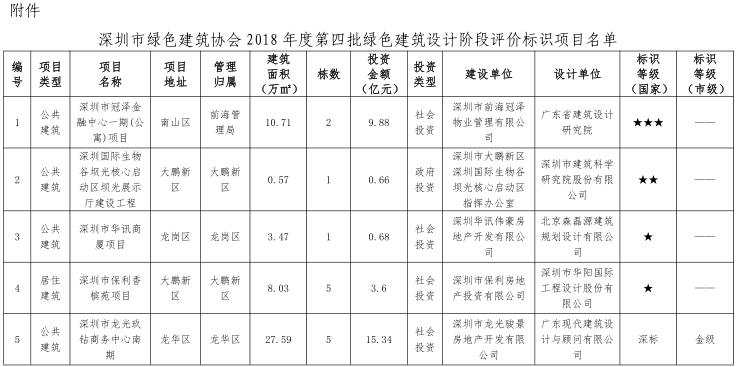 關(guān)于2018年度第四批綠色建筑設(shè)計階段評價標(biāo)識項目的公告