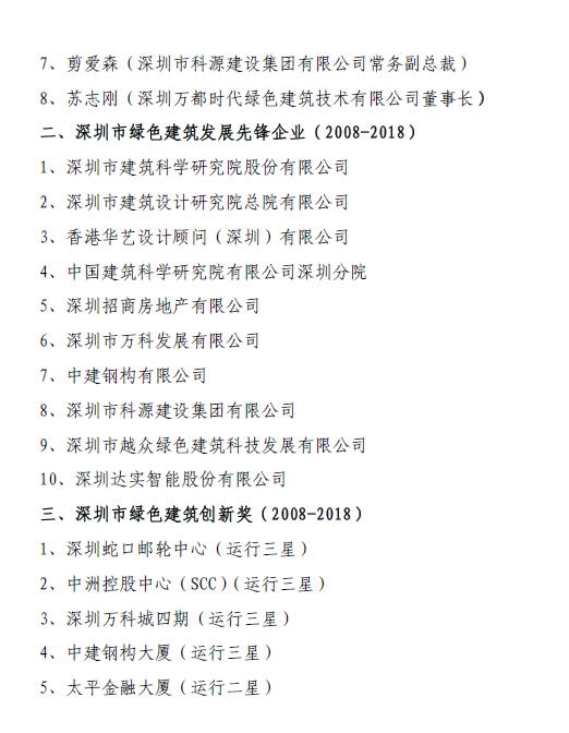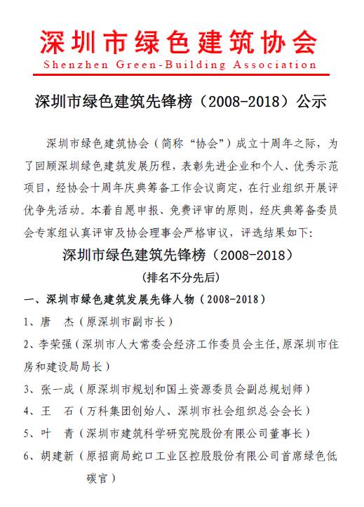 深圳市綠色建筑先鋒榜(2008-2018)公示