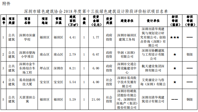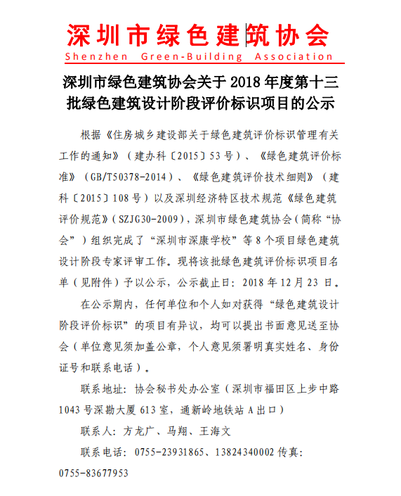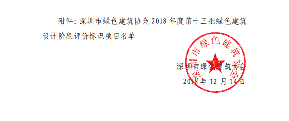 深圳市綠色建筑協(xié)會(huì)關(guān)于2018年度第十三批綠色建筑評(píng)價(jià)標(biāo)識(shí)項(xiàng)目的公示