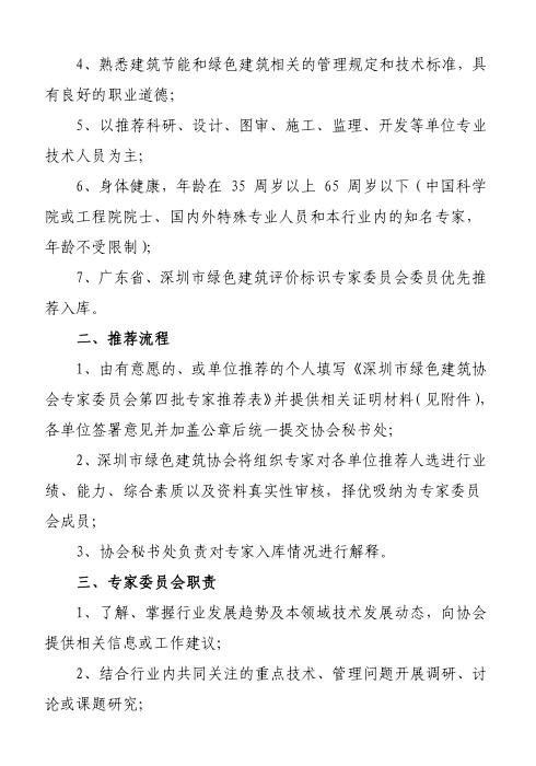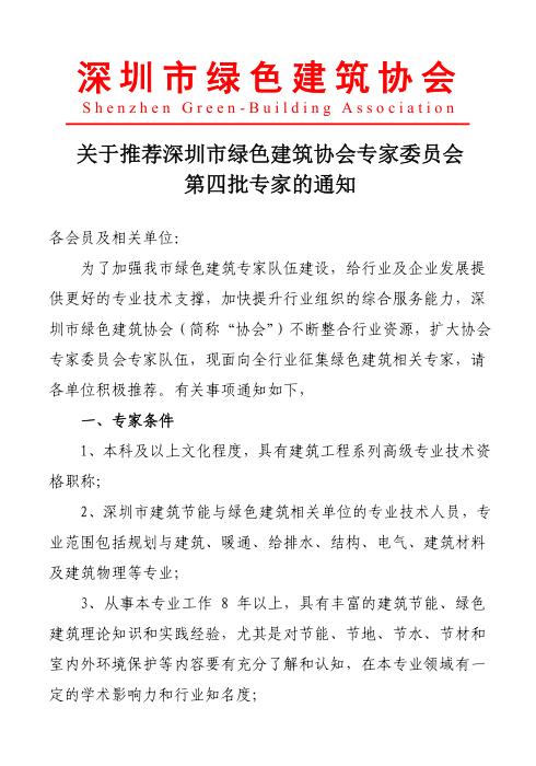 關(guān)于推薦深圳市綠色建筑協(xié)會(huì)專家委員會(huì)第四批專家的通知