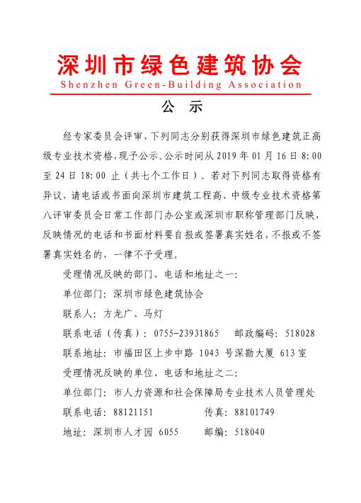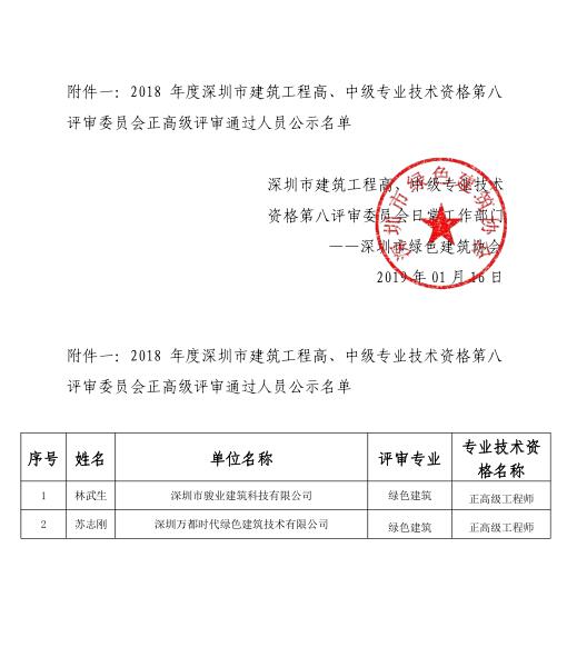 2018年度深圳市建筑專業(yè)高、中級專業(yè)技術(shù)資格第八評審委員會(huì)評審?fù)ㄟ^人員公示