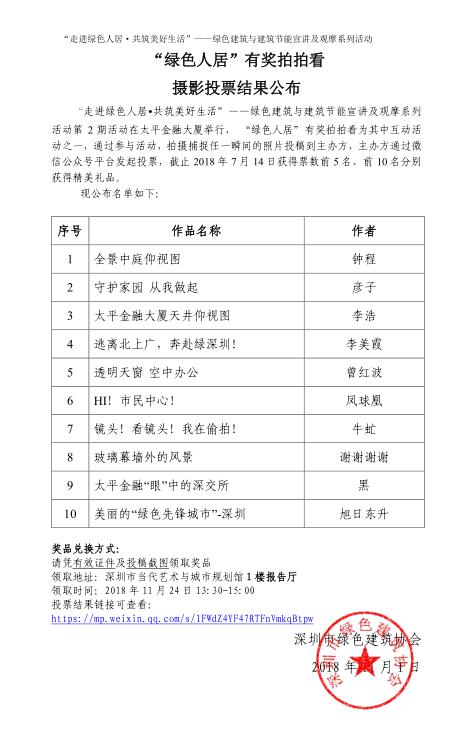 “綠色人居”有獎拍拍看攝影投票結果公布
