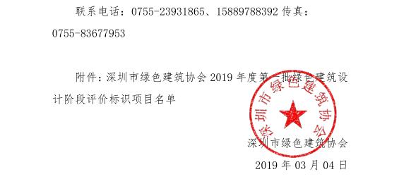 深圳市綠色建筑協(xié)會關(guān)于2019年度第一批綠色建筑評價標(biāo)識項目的公示